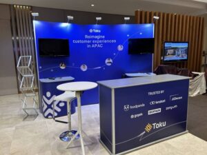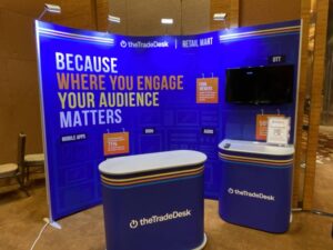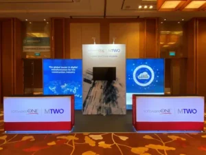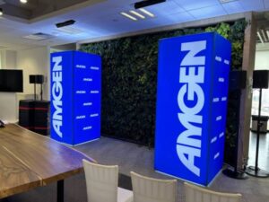 If you rent one of our packages, we’ll set up the booth for you and take it down afterwards and we’ll also store the graphics for you free of charge so that you can use them again at future exhibitions.