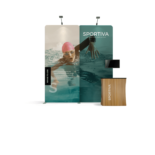 The kit is built using simple and lightweight aluminum frames with pillow case-style, wrinkle-resistant polyester fabric graphic panels which zip over the frames.