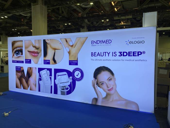 Rental Package 14 is our stunning Casonara Lightbox at 6mW x 2.45mH, and we think this is the best quality lightbox available in Singapore. A combination of lighting spread evenly behind the graphic with a high-quality fabric creates a stunning backlit graphic for your booth or stage.