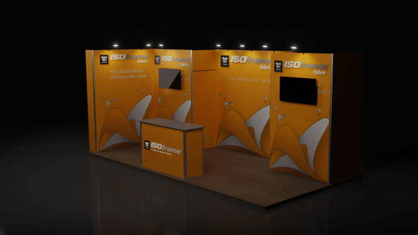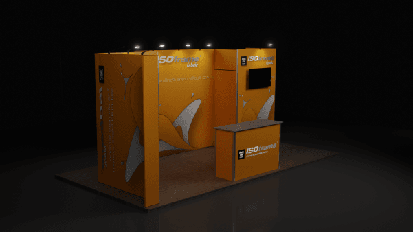 An ISOframe Fabric Exhibition booth is a sophisticated and versatile display solution designed to captivate and engage attendees at any trade show or exhibition. Its defining feature is its seamless fabric graphics, which create a sleek and professional look.